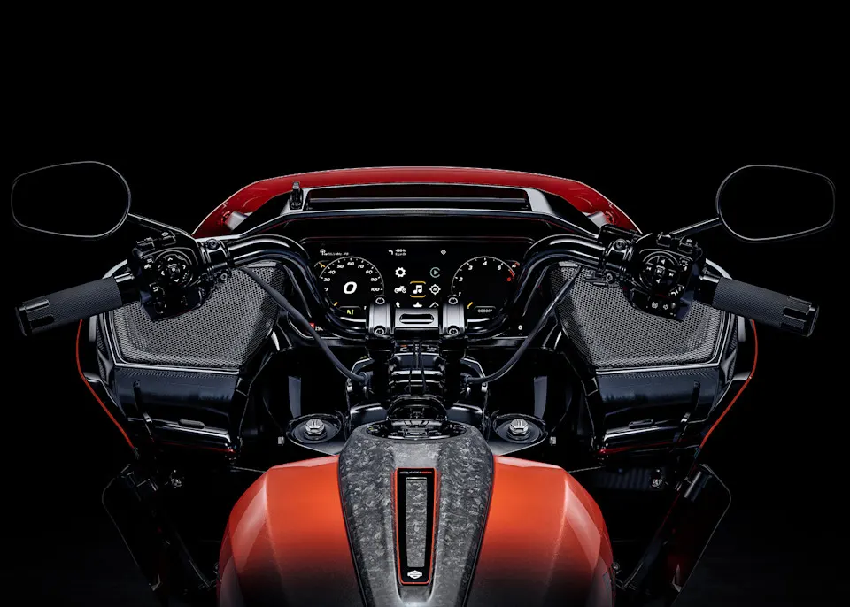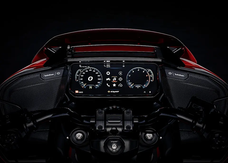 Il CVO Road Glide ST 2026 rappresenta l’interpretazione più estrema del bagger Harley-Davidson ispirato alle competizioni. Il motore Milwaukee-Eight® 121 ad alto rendimento sprigiona potenza e prestazioni senza compromessi, respirando attraverso l’aspirazione Heavy Breather e rifinito da marmitte con terminali in titanio. I dettagli in fibra di carbonio forgiata, i riser alti con assetto sportivo direttamente dalla fabbrica, le sospensioni con serbatoio remoto e le modalità di guida dedicate alla pista completano un mezzo progettato per offrire look, controllo e sensazioni di una vera macchina nata per andare più veloce di tutte.