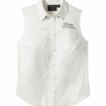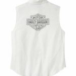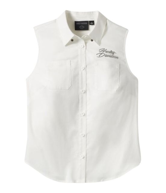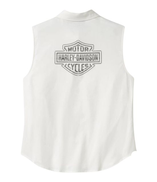 DESCRIZIONE: Camicia senza maniche Harley-Davidson Essential, iconica scritta sul lato sinistro e Bar & Shield sulla parte superiore della schiena tutto luccicante di strasse! Realizzata in morbido mix di cotone 60% e Tencel 23% con un 17% di twill di lino di peso medio. Il taglio e le pinces modellano il busto e mettono in evidenza la tua silhouette.