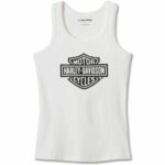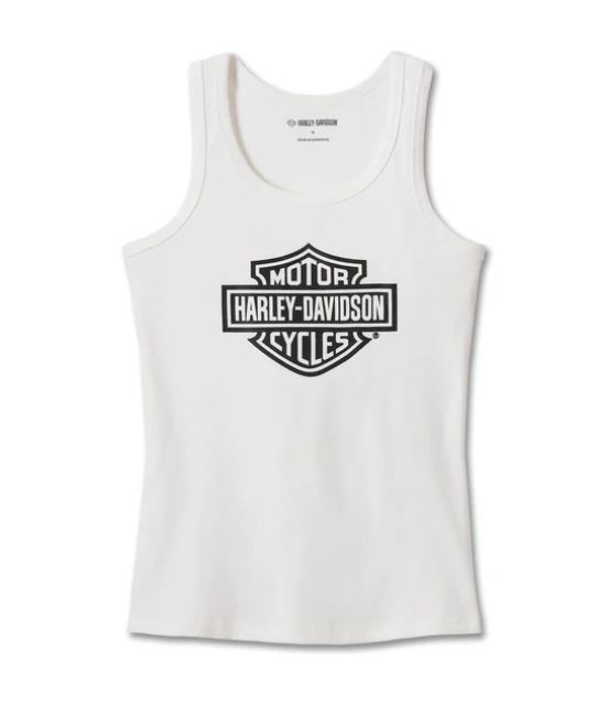 DESCRIZIONE: Stai fresca anche nelle giornate più calde con la nostra canotta Harley-Davidson® Bar & Shield! Il suo aspetto testurizzato è realizzato in cotone a costine con solo un tocco di Spandex per una maggiore elasticità. Scollo e giromanica bordati per aumentare la durata, questa canotta è decorata sul davanti con il nostro logo più iconico e audace.