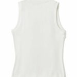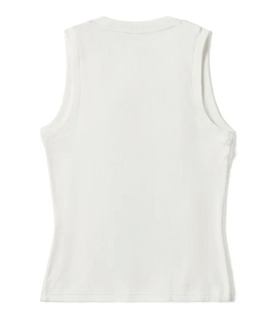 CARATTERISTICHE: Costina 2x2 leggera 58% cotone, 38% modal, 4% spandex. Taglio attillato. Bordo risvoltato su collo e giromanica. Scollo ampio e profondo. Orlo diritto. Applicazione ricamata con stampa a mano morbida.