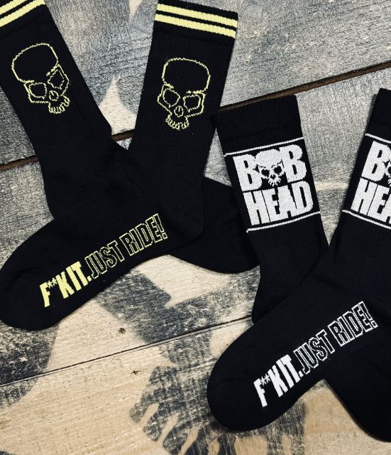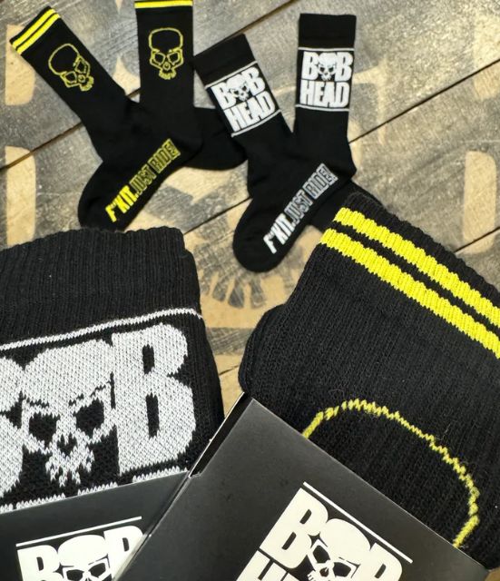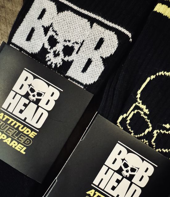 DESCRIZIONE: Per coloro che desiderano un look dalla testa ai piedi, dai un'occhiata ai calzini in cotone con marchio Bobhead. Morbido, resistente e traspirante e pronto per il rock! Lo stock attuale si adatta alla taglia di scarpe 7-11. Un paio giallo e nero più un paio bianco e nero inclusi in ogni acquisto.