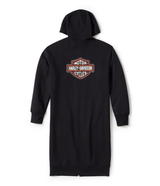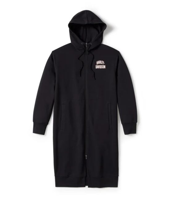DESCRIZIONE: Perfetto per una serata calma o per un'uscita casinara con le amiche, il duster full zip Essential è irrinunciabile nel tuo guardaroba. Realizzato per la massima durabilità e comfort grazie al tessuto interlock pesante di cotone/poliestere, si caratterizza per il taglio più lungo, che si abbina bene a un paio di leggings o a dei jeans aderenti. Questo duster da donna è dotato di un cappuccio con coulisse foderato in jersey e polsini con foro per il pollice, per mantenere le mani calde. Il capo è rifinito con grafiche di ispirazione floreale, per un autentico look Harley-Davidson. Acquistala subito prima che le scorte finiscano.