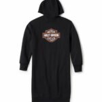 CARATTERISTICHE: Maglia pesante interlock 55% cotone, 45% poliestere (Harley Black). Maglia pesante interlock fiammata 60% cotone, 40% poliestere (Light Grey Heather). Chiusura anteriore con cerniera a doppio cursore. Tasche scaldamani a filetto. Il tagliò è più lungo e arriva appena sotto al ginocchio. Cappuccio foderato in jersey con coulisse dalle estremità in gomma. Vita e orlo inferiore in tessuto a coste. Fori per i pollici sui polsini. Stampa a mano morbida.