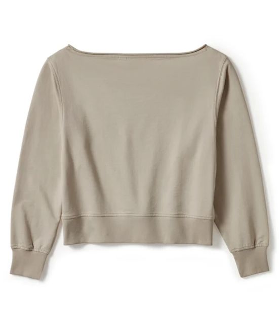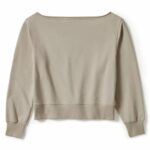 CARATTERISTICHE: Tessuto French terry in puro cotone sottoposto a lavaggio ammorbidente. Taglio più corto e vestibilità rilassata. Scollo con spalle scoperte. Spalle scese. Finitura girocollo a taglio vivo. Polsini a costine con fori per i pollici. Orlo in tessuto a coste. Serigrafia a mano morbida sfumata.