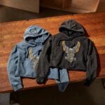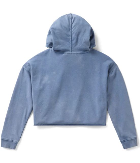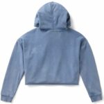 CARATTERISTICHE: 77% cotone, 23% poliestere, French terry di medio peso, lavaggio acido intenso. Vestibilità più corta. Cappuccio con coulisse. Cuciture grezze sul giromanica. Polsini a costine. Orlo non rifinito. Stampa effetto used con effetto morbido al tatto.