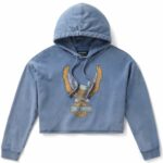 Felpa Donna Con Cappuccio Corta Con Aquila Al Neon – Ensign Blue