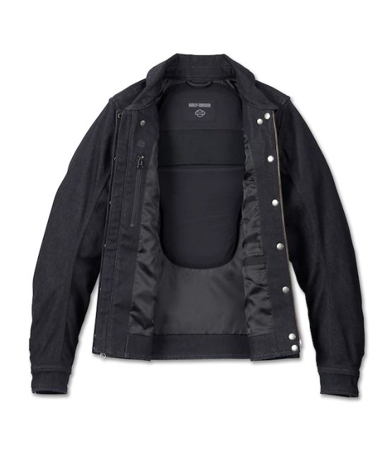 CARATTERISTICHE: 51% nylon Cordura ® , 38% cotone, 11% modal, denim da 14 once. Fodera in taffetà 100% poliestere, maniche precurvate. Azione indietro, zip frontale a doppio cursore. Abbottonatura e polsini con automatici,