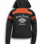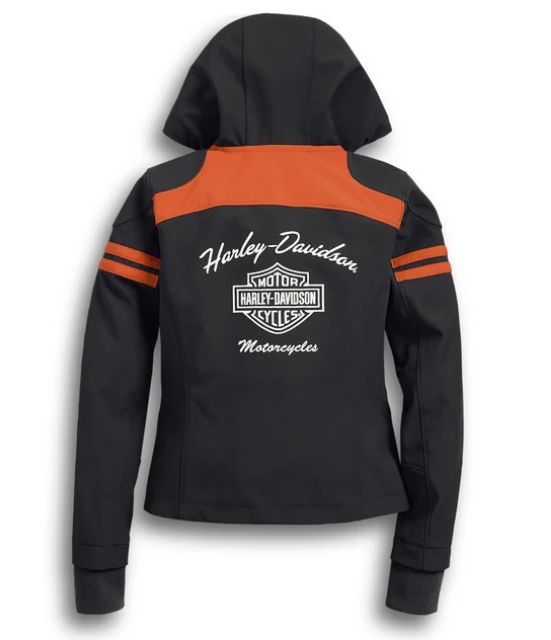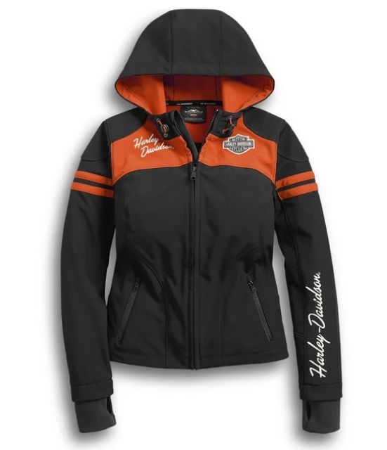 DESCRIZIONE: La nostra giacca sportiva Miss Enthusiast Soft Shell è stata progettata con un innovativo tessuto elasticizzato in quattro direzioni. Questo significa che permetterà di realizzare ogni movimento in sella e a terra senza quella fastidiosa sensazione restrittiva tipica di alcune giacche rigide in tessuto. Altre caratteristiche? Cappuccio con tira-coulisse integrato e polsini a costine più lunghi per proteggere le braccia dall’aria fredda. L’imponente ricamo con logo Bar & Shield sul retro determina lo status iconico di questa giacca casual da donna.