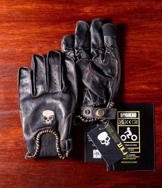 Migliora il tuo stile con i guanti Snatch di BOBHEAD! Realizzati in vera pelle, questi guanti vantano un design elegante con le nocche con il marchio del teschio BOBHEAD per un tocco audace. Dotato di una fodera protettiva di livello 1 per protezione, comfort e dotato di una chiusura a bottone regolabile decorata con teschi per un tocco in più.