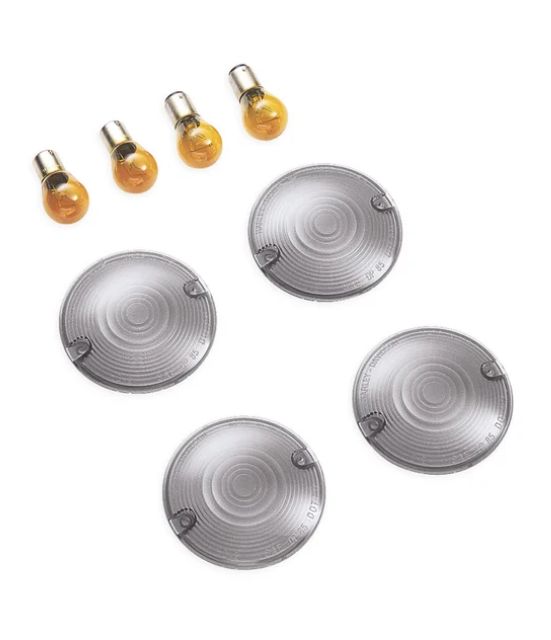 Per modelli dal ‘86 on poi dotati di indicatori di direzione con lenti piatte. Il kit comprende 4 lenti e 4 color ambra.