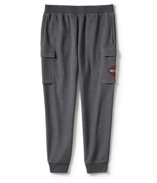 DESCRIZIONE: Goditi il ​​vero comfort e il classico stile HD con i nostri pantaloni cargo Essential Fleece. Realizzati in un morbido ma resistente interlock di cotone e poliestere, questi pantaloni da uomo in pile offrono una vestibilità dritta su fianchi e cosce. Presentano tasche con cerniera e tasche laterali cargo con patta e chiusura a scatto. Rifiniti con il nostro logo più iconico ricamato sulla gamba.
