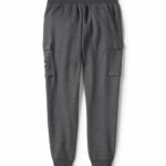 CARATTERISTICHE: vestibilità dritta su fianchi e cosce. 55% cotone, 45% poliestere, maglia interlock pesante tinta unita. 60% cotone, 40% poliestere, maglia interlock pesante mélange. Cintura in maglia a coste con coulisse. Fondo gamba in maglia a coste. Tasche con cerniera. Tasche laterali cargo con patta e chiusura a scatto. Ricamo diretto.