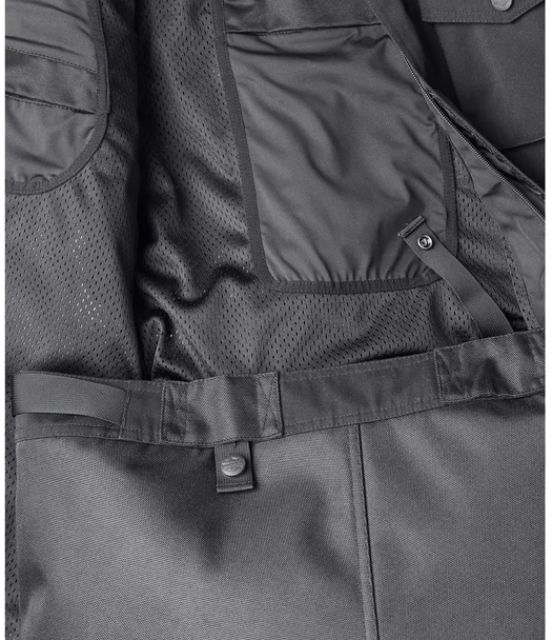CARATTERISTICHE: Aperture sulla coscia per favorire il raffreddamento. Impermeabile e con cuciture sigillate. Gambe precurvate con ginocchio articolato. Vita regolabile. Corpo in tela 100% poliestere. Rinforzi a 900 denari su ginocchia e seduta. Fodera in 100% rete di poliestere. Chiusura a scatto con cerniera e soffietto completo. Tasche scaldamani con cerniera. Comprende protezioni omologate su anche e ginocchia. Ginocchia e cavallo rinforzati. Scudi paracalore nell’interno gamba. Cerniera sotto la patta nella parte inferiore della gamba, con linguetta regolabile alla caviglia. Strisce in materiale riflettente Scotchlite di 3M per conferire maggiore visibilità. Possibilità di agganciare la giacca al pantalone. Inserti antiscivolo sulla seduta.