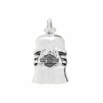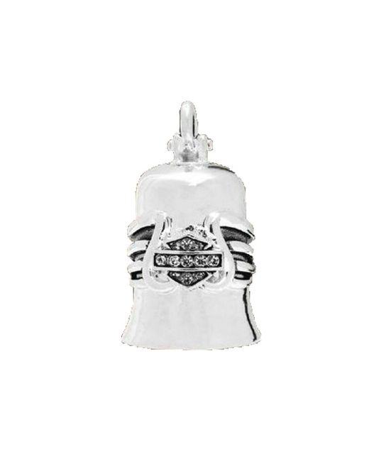 DESCRIZIONE: Campanello Harley-Davidson® Silver Bling Wing  con dettagli scintillanti. Increspato per imitare le ali, questa campana presenta l'iconica silhouette Bar & Shield piena di strasse. La campana è in metallo, include anello per appendere, una custodia in feltro e una carta leggenda. La leggenda dice che gli Evil Road Spirits si sono attaccati alle motociclette da quando ci sono state biciclette sulla strada. Questi Evil Road Spirits sono responsabili di problemi meccanici e sfortuna lungo un viaggio. La leggenda continua dicendo che attaccando una piccola campana alla tua moto, gli Evil Road Spirits rimarranno intrappolati all’interno della campana dove il suono costante li fa impazzire, facendogli perdere la presa fino a cadere a terra. La leggenda continua a dire che il misterioso potere della Campana Guardian ™ è due volte più forte quando viene acquistata da un amico o da una persona cara e data in regalo. Mostra a qualcuno quanto ci tieni dandogli una difesa contro gli spiriti della strada malvagia! Dai una campana Guardian ™ e condividi la leggenda della buona fortuna che offre a una motocicletta e al suo motociclista!