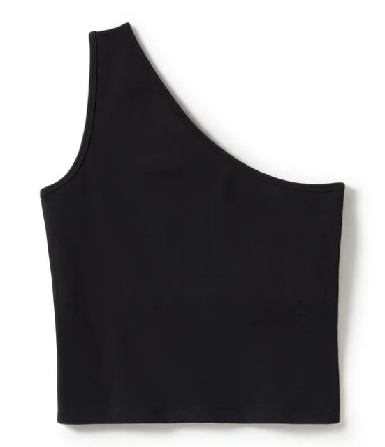 CARATTERISTICHE: 97% cotone, 3% spandex, interlock pesante. Silhouette monospalla. Scollatura e giromanica fasciati. Reggiseno interno con orlo elastico. Stampa sfumata morbida con abbellimenti.
